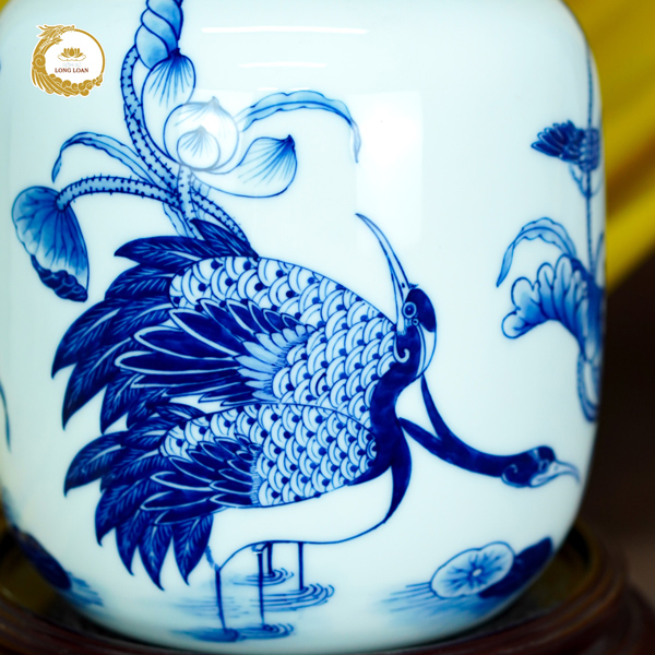 Bình gốm Sen Hạc men lam gốm sứ Bát Tràng Long Loan