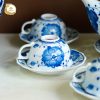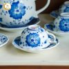 Bộ ấm chén gốm sứ Bát Tràng vẽ hoa dây men lam phù hợp để phòng khách gia đình, bàn trà trong phòng làm việc cho đến những không gian tiếp khách sang trọng.