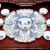 Bộ bát đĩa hoa mặt trời Hoa Mẫu Đơn men lam vẽ vàng kim – Gốm sứ Bát Tràng