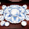 Bộ bát đĩa hoa mặt trời Sen men lam – Biểu tượng của sự hài hòa và viên mãn