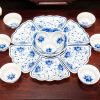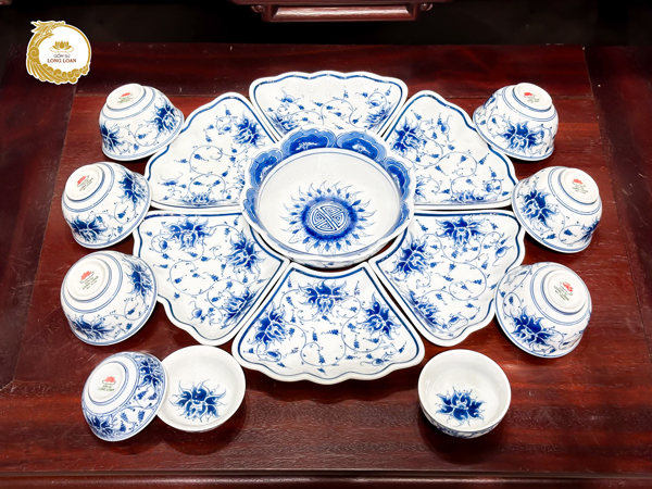 Bộ bát đĩa hoa mặt trời Sen Phú Quý men lam – Gốm sứ Bát Tràng
