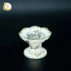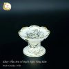 Phần miệng khay được tạo hình cánh hoa uốn lượn mềm mại, tạo cảm giác thanh thoát nhưng vẫn chắc chắn. Thân khay phình nhẹ, gắn liền với phần đế tròn, giúp tổng thể cân đối và hài hòa. Chiều cao H10 vừa phải, phù hợp đặt trên bàn thờ tạo sự cân xứng với các vật phẩm khác như bát hương, mâm bồng, nậm rượu….