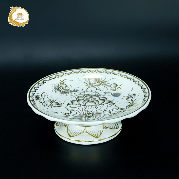 Mâm bồng Sen bạch ngọc vẽ vàng kim – Gốm sứ Bát Tràng